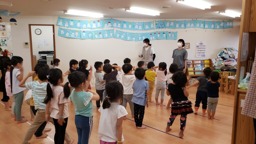 降園、下校時に園施設や用具をお借りして体操指導を行います。室内での体操・ダンス教室をはじめ、園庭でのサッカー教室など保護者の方のご要望、また園の環境に合わせてご提案致します。